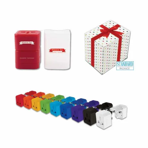 This colorful universal travel adapter covers more then 150 country's wall adapters. Includes a built in fuse protection. Perfect for everyone on the go. All stored in a nice clear case! Package Option: · Standard Holiday-Themed Corrugated Gift Box